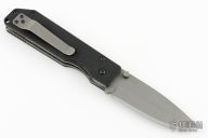 Tactical folder made by Buck with Strider engineering. Bead blast finished blade with notched thumbrest and dual thumbstuds. The handle has black G-10 scales, bead blasted titanium liners, tip up reversible carry bead blasted stainless steel clip. Comes with original box. Has some light scuffs and scratches, excellent condition otherwise.