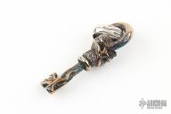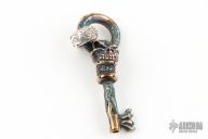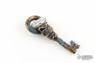 This Hot Head Slickster Key has the classic Slickster design with textured and flamed skull and key, with matte details and polished highlights. The pendant hangs from a sterling silver Flame bale. This is one of the larger Starlingear pendants, and looks great on a chain or leather loop or even as a keychain.