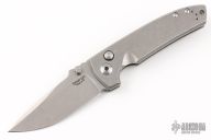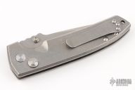 This Project VECP Buttonlock from Les George features a stonewashed CNC flat ground blade and a tumble finish titanium frame. Tip up titanium clip. Phosphorus bronze washers. Smooth action. Nice blade seating, detent and lockup. Comes with original zipper case. New condition.