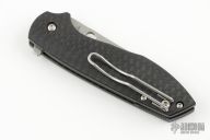 This Positron by Spyderco is a Brad Southard design, it features a tumble finished blade with notched thumbrest, thumbhole and flipper. The handle has a carbon fiber frame, black G-10 backspacer with stainless steel liner and a tip up paper clip style clip, left or right reversible. Comes with original box and papers. Excellent condition.