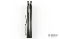 This Positron by Spyderco is a Brad Southard design, it features a tumble finished blade with notched thumbrest, thumbhole and flipper. The handle has a carbon fiber frame, black G-10 backspacer with stainless steel liner and a tip up paper clip style clip, left or right reversible. Comes with original box and papers. Excellent condition.