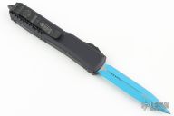 This Ultratech OTF automatic by Microtech features a D/E blue blade. Black aluminum contoured frame with black tip down stainless steel clip. Dated 04/2016 and s/n 00588. Comes with original box and papers. Excellent Condition.