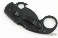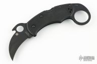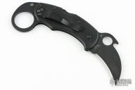 This Karahawk by Spyderco features a black hawkbill blade with thumbhole and wave feature. The handle has black G-10 scales with stainless steel liners and backspacer, tip up black stainless clip, left or right reversible. Comes with original box and papers. Has some scuffs and scratches, otherwise good condition.