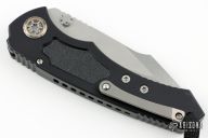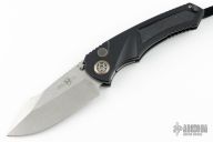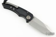 This D/A Pariah Auto by Heretic Knives features a stonewashed blade with notched thumbrest and dual thumbstuds. The handle has a black aluminum frame with non-slip inserts, flamed titanium pivot collars and a tip up clip with ceramic ball. Comes with original box and card. S/N 00143. Dated 12/2021. Has a couple light scuffs, otherwise Excellent Condition.
