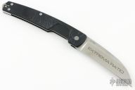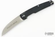 This knife by Extrema Ratio features a black hawkbill blade. The handle is composed of black aluminum over black steel liners. Comes with original box and papers. Has some scuffs and scratches great condition otherwise.