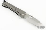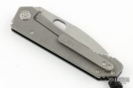 This 187 DPT Drop Point by Medford Knife and Tool features a satin finish drop point blade with notched thumbrest and thumbhole. The handle has a stonewashed titanium frame, g10 scale, and titanium clip. Nice blade seating, detent and lockup. Comes with original box, and zipper case. Excellent condition.
