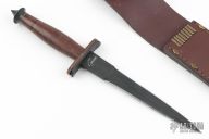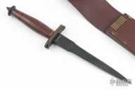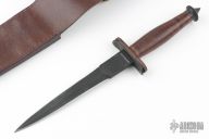 An important piece of equipment of the Devil's Brigade was the specially designed V-42 combat knife, which was also part of the intensive close combat training. The handle of compressed leather discs ends in a pointed impact cap. A thick leather padding underneath the slightly curved pommel offered protection from injury. The double-edged blade of the dagger features a corrugated thumb rest for a secure grip. To this day, the crest of the Special Forces of the U.S. Army adorns this legendary dagger. We not only deliver this exclusive collector's item with its classic leather sheath, but also with a replica of the cloth insignia of the unit, which is the red spearhead, and with a reproduction of the original German sticker with the words "The worst is yet to come!", which was stuck behind enemy lines in order to demoralize the enemy. A premium collector's ensemble, especially ideal for aficionados of military history!
