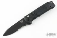 This 4400 Casbah model is equipped with a black FRN handle and a black finished S30V blade. The Benchmade Casbah automatic offers fast-response automatic action with a lightweight, high traction handle. A front loaded push button and sliding safety make operation a breeze, with a reversible tip-up pocket clip for versatile everyday carry. The Casbah is available with black or blue Grivory handles and a variety of blade finishes. Rock the Casbah with this solid, lightweight automatic from Benchmade Knives. Comes with original box, drawstring pouch and papers. Excellent condition.