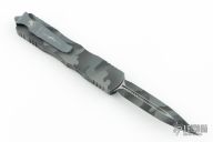 This Dirac OTF automatic by Microtech features a D/E urban camo blade with a standard edges. The handle has an urban camo aluminum with stainless steel tip down clip and hardware. Serial number 134 and dated 01/2023. Includes the original box and papers. Comes with a Kydex neck sheath. Has some wear on the finish, otherwise good condition.