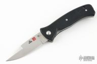 This Mini SERE 2000 Linerlock Folder by Al Mar has a satin finished spear point blade with dual thumb studs. Handle is black G10 over stainless steel liners, and lanyard hole. Has a couple light scratches, otherwise excellent condition.