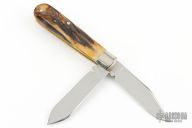 This slipjoint from Northwoods Knives features polished blades with swedges and nail nicks. The handle is comprised of nickel silver bolsters with stag covers and over brass liners, nickel silver escutcheon, and stainless steel spring. Has a couple light scratches, otherwise excellent condition.