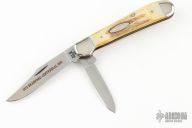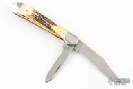 This Stag Trapper by Case features 2 mirror polished blades with nail nicks. The handle has nickel silver threaded bolsters, stag jigged bone covers, with a Case shield, brass liners and stainless springs. Has a couple light scratches, excellent condition otherwise.