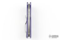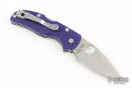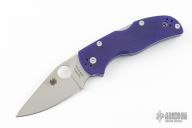 This Native5 folder by Spyderco Knives has a satin finish blade with thumbhole. The handle has purple G-10 scales, stainless steel liners, and a 4-way reversible stainless steel clip. Nice smooth action. Has a couple light scratches on the blade, otherwise excellent condition.