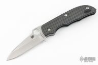 This Bob Terzuola designed slipjoint by Spyderco has a satin finish blade and textured black carbon scales. Nice one-handed opening with solid half- and full-stop. Has some light scratches, otherwise excellent condition.