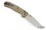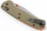 The Taggedout is a Benchmade hunting knife, with a Benchmade's renowned AXIS lock. This pocket knife has a sturdy OD green G-10 handle with an orange backspacer. The knife is fully ambidextrous, with a clip that can be switched from side to side. The Taggedout is a cutter for the outdoors and a handy companion to any that dare to explore.