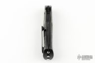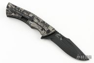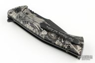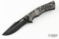 This S5 is an impressive collaborative knife design from Zieba Knives and Jason Knight. Its rounded titanium frame lock handle is contoured for comfortable use, and has a laser engraved finish. The knife sports a unique harpoon style recurve black blade with stylized grooves and a flipper tab. The knife comes complete with a machined titanium pocket clip for secure tip-up carry. Titanium handle construction provides a durable, lightweight frame. Steel lock bar insert for secure over-travel protection. Ceramic ball-bearing pivot makes blade deployment a snap. Comes with zippered and card dated 7-7-21. Excellent condition.