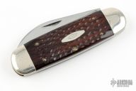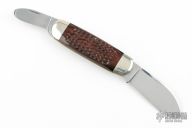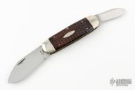 This slipjoint from Case Knives features two drop point mirror polished blades with nail nicks. The handle has nickel silver bolsters with jigged wood covers over brass liners and stainless steel spring. Excellent condition.
