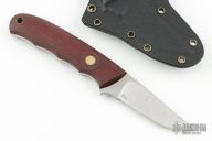 This K-18 Straight Personal features a satin finished blade, .109" blade thickness and .801" blade depth, full tang construction. The handle has micarta scales, brass pins and lanyard hole. Comes with a kydex sheath with belt clip. Has been resharpened.  Has some scuffs/scratches/patina on the blade otherwise the knife is in good condition.
