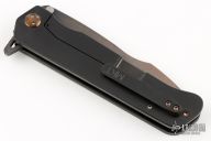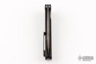 The Giants from Greek mythology would carry this knife. It is HUGE and befitting of its name. The knife sports a black PVD D2 Harpoon-style floated false edge and extremely practical main edge for all seasons. For men with big hands, this knife is right at home. For normal hands this knife is stunning in its light weight and very comfortable feel. When size does matter, the Gigantes is the right choice. The uniform stock thickness of this knife put everything into balance and you will be stunned how easily this truly Giant knife fits into normal jean pockets and makes a great EDC pocket sword. This knife has a black finished blade and a black PVD titanium frame with matching tip up titanium clip. Comes with original box, zipper case, and papers. Has a couple light scuffs, otherwise Excellent condition.