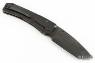 This Slim Midi Marauder from Medford Knife and Tool features a black drop tanto point blade with thumb stud and recess. The handle is comprised of a milled black titanium frame with matching tip up clip over anodized spacer pins with integrated lanyard hole. Excellent detent, lockup, and seating. Original case, papers, and box. Excellent condition.