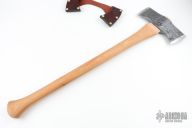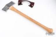 Our axes are hand forged from a block of 4142 chrome/moly alloy steel in the Blue Ridge mountains on the Western North Carolina, Eastern Tennessee line and heat treated to 55.5 HRC. The heads are hung on straight grained hickory handles made from cabinet grade kiln dried lumber. Each handle is hand fitted with a drawknife. The Saddle Axe head weighs 3.6lbs, and is hung on a 27.5 inch octagonal hickory handle. Octagonal handles naturally feel better in the hand, and provide better indexing. Double bit axes give you two blades in one. For example, it’s wise to save one of your blades for finer cutting work, while sacrificing the other for grub work near the ground where edge damage is likely. Double bit axes are very balanced as well. Sheaths are hand made with thick vegetable tanned water buffalo leather. 100% made in house. Overbuilt and ready to use, because overkill never fails.