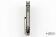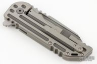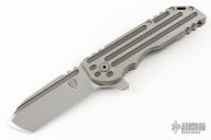 This Warhorse features a hand rub satin finished blade with fullers that opens/closes effortlessly on caged bearings. The handle is titanium with a satin finished tip up clip and an acid tumbled titanium backspacer. The blade is centered when closed and locks up with no play. Has a couple light scratches, excellent condition otherwise.