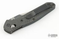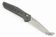 This Obsorne Axis Lock Folder by Benchmade is a Limited Edition of 500, this is #074. It has a stonewashed clip point blade with swedge and dual thumb studs. Handle is carbon fiber with titanium backspacer and black stainless steel tip up clip (RH/LH carry). Centered blade and smooth action. Comes with original clam shell box and papers. Excellent condition.