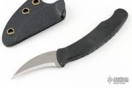 This L-via by Kopis Design features a bead blast and tumble finish hawkbill blade with .061" blade stock and .784" blade depth, hidden tang construction. The handle is glass filled nylon. Comes with a kydex sheath and original box. Excellent condition.
