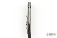 This Unumzaan from Chris Reeve Knives features a tanto stonewashed blade with dual thumb studs and notched thumbrest. The handle is comprised of bead blasted and milled titanium with matching tip up clip. Lanyard pin with lanyard and spacer bead in pommel. Excellent condition. Comes with original box, cloth, lube, tools, and papers dated OCT 5 2023.