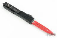 This Ultratech OTF automatic by Microtech features a D/E red blade. Black aluminum contoured frame with black tip down stainless steel clip. Dated 08/2021 and s/n 5467. Includes original box. Excellent condition.