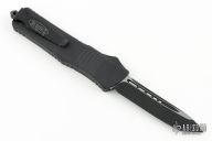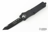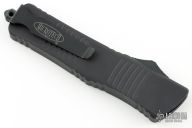 This Combat Troodon OTF automatic by Microtech knives features a black tanto blade, and a black aluminum handle with black hardware, tip down carry. Glass breaker. Dated 06/2015 S/N14594. Excellent condition.