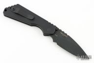 This Pro-Strider SNG by Pro-Tech and Strider Knives features a black blade with notched thumb rest. The handle has a black aluminum frame with black hardware and black stainless steel tip up clip.   Comes with pro-tech soft pouch. Has a couple light scuffs, excellent condition otherwise.
