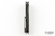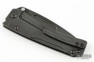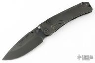 This Slim Midi Marauder from Medford Knife and Tool features a black drop point blade with thumb stud and recess. The handle is comprised of a milled black titanium frame with matching tip up clip over anodized spacer pins with integrated lanyard hole. Excellent detent, lockup, and seating. Original case and papers dated AUG 28 2019. Excellent condition.