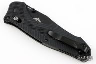 This Contego from Benchmade features a black blade. Black G-10 handle textured in the center and grooved on edges for a better grip. Carbide glass breaker on pommel. Perfect function and strong lock up. Comes with original box and papers. Excellent Condition.