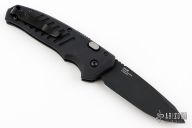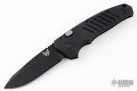 This Auto APB from Benchmade features a black coated drop point blade with notched thumb rest. The handles are comprised of black billet aluminum handles over steel liners and backspacer. Lanyard hole and glass breaker on pommel. This knife features a unique action in which buttons to activate the auto opening are placed on both sides of the knife for a truly ambidexterous action. Stainless steel tip up clip, left or right reversible. Includes drawstring pouch and original packaging. Excellent condition.