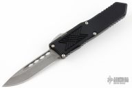 This GTX OTF by Guardian Tactical features a stonewashed drop point blade with fuller. The handle features a milled and chamfered aluminum body with tip down black stainless clip. Comes with orignial box and papers. #1093. Excellent condition.