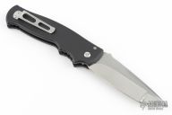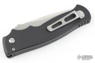 This M2 Automatic (1 of 20) by Walter Brend features a two-tone finished multi-grind tanto polished satin hand-ground blade. Black aluminum frame with stingray inserts and a stainless tip up carry clip. Black lip pearl inlaid push button. Comes with a zipper case. Excellent condition.