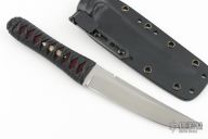 "I believe that in order to make a superior knife you must use superior materials. That is why I work with top grade, high-tech materials. The steels I generally use in my folders and fixed blades are CPM S30v, CPM 154 CM, BG-42, and Damasteel. The handle materials I mostly use range from G-10, Micarta, and carbon fiber to mother of pearl and fossilized mammoth ivory. I exclusively use 6al/4v titanium for the liners in my folders. I mostly make my bolsters from materials such as 6al/4v titanium, damascus, carbon fiber, timascus or mokume. When making Japanese style blades I generally use 1050, 1084, or L6. The handles will usually consist of a phenolic handle covered in stingray skin then wrapped with a nylon cord that has been impregnated with resin to give it maximum strength, toughness, and longevity. I am constantly striving for perfection in creating, for what I feel is one of the highest quality knives on the market today."