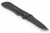 This Nitrous Stryker by Benchmade features a black blade with partially serrated edge. Assisted opening. Textured black G10 scales and titanium liners with a tip down black stainless steel clip. Nice detent, lockup and blade seating. Comes with original box and papers. Excellent condition.