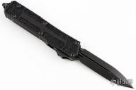The Microtech Scarab II is a high quality tactical out-the-front knife, based on the original Microtech Ultratech design. Built to withstand the extreme, the Scarab II excels in high-intensity covert operations. The Scarab II is designed for a broad spectrum of utility and close quarter combat applications for use by qualified law enforcement, military, and government agency operatives. The Scarab II is fabricated to the highest possible standards to assure reliability and safety with its use. Featuring a one-handed, open and close, dual-action out-the-front (OTF) design, and double edge blade. The Scarab is produced with a large easy-to-grip handle that contains non-slip grip inlays on both sides. Comes with original box and papers. Excellent condition.