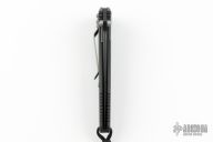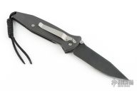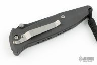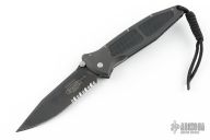 This Socom M/A by Microtech Knives has a black partially serrated blade and a black aluminum frame with a bead blasted stainless steel clip and hardware. Dated 10/98. Comes with a Lightfoot Microtech box, Microtech sheath and papers. Has some scuffs and scratches, otherwise great condition.
