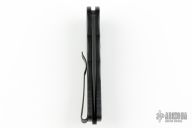 This TR-5 automatic model has a black anodized aluminum handle with a two-tone black back spacer/lanyard attachment, and a deep carry tip-up pocket clip. Its blade is made from CPM-S35VN stainless steel in a black finish. A sliding safety lock allows secure pocket carry and prevents accidental blade deployment.