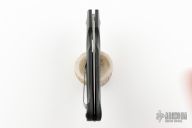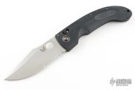 This 741 LUM Onslaught Axis Lock Folder has a stonewashed 154-CM clip point blade with thumb hole. Handle is black G10 over stainless steel liners, black fiber backspacer, black stainless steel tip up clip, and lanyard hole. Includes the original box and papers. Excellent Condition.