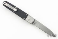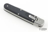 We are excited to present you the latest switchblade from the italian knifemaker company A.G.A Campolin the Baron Elite. This automatic knife is the modern evolution of the Baron build with the same leverlock mechanism like the successful "Zero". This Baron Elite is a Limited Edition of 100 pieces. It features a stonewash finished Böhler M390 stainless steel drop point blade. The handle on this switchblade is made of g10 3D scales and the titanium bolsters, liners, screws and clip are bead blasted. The springs are very easy to replace and the Baron Elite Limited Edition comes with an extra spring, box and certificate.