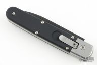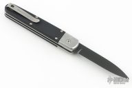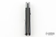 We are excited to present you the latest switchblade from the italian knifemaker company A.G.A Campolin the Baron Elite. This automatic knife is the modern evolution of the Baron build with the same leverlock mechanism like the successful "Zero". This Baron Elite is a Limited Edition of 100 pieces. It features a black finished Böhler M390 stainless steel drop point blade. The handle on this switchblade is made of black g10 3D scales and the titanium bolsters, liners, screws and clip are bead blasted. The springs are very easy to replace and the Baron Elite Limited Edition comes with an extra spring, box and certificate.