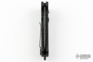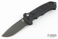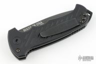 This 06 Side Opening Auto has a matte black finished S30V drop point blade. The handle is black aluminum over black stainless steel liners, exposed stainless steel tang butt/ glass breaker/ backspacer with lanyard hole, black stainless steel tip up (RH/LH reversible) clip, and safety button. Comes with original box, papers, and belt sheath. Has some light scuffs, otherwise Excellent condition.