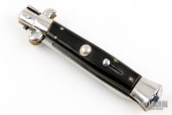 This Swivel Bolster features a mirror polished flat ground blade. The handle has nickel silver bolsters, front and rear, buffalo horn scales, brass liners, stainless spring. Has some scratches and patina, otherwise excellent condition.