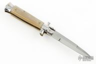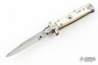 This auto features a spear point blade with a false top edge. Nickle silver guard and rear bolster and buffalo horn scales as well as brass liners. Nice function, strong firing. Has some light scratches and patina, otherwise excellent condition.