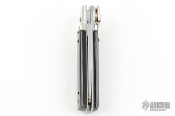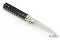 This small leverlock from AKC Italy features a drop point polished blade. The handle is comprised of nickel silver bolsters, buffalo horn scales, stainless steel liners and backspring. Excellent condition.