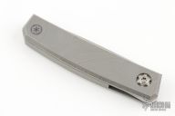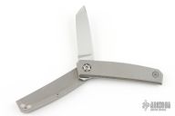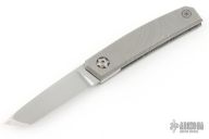 This Tengu by Jared Oeser features a hand rub satin finished tanto style blade. The handle has laser engraved titanium handles and backstrap with inlaid rare earth magnets. Imperial cog logo. Comes with a leather pocket sheath, original box, hank and COA dated 05/04/22. Nice action and blade seating. Excellent Condition.